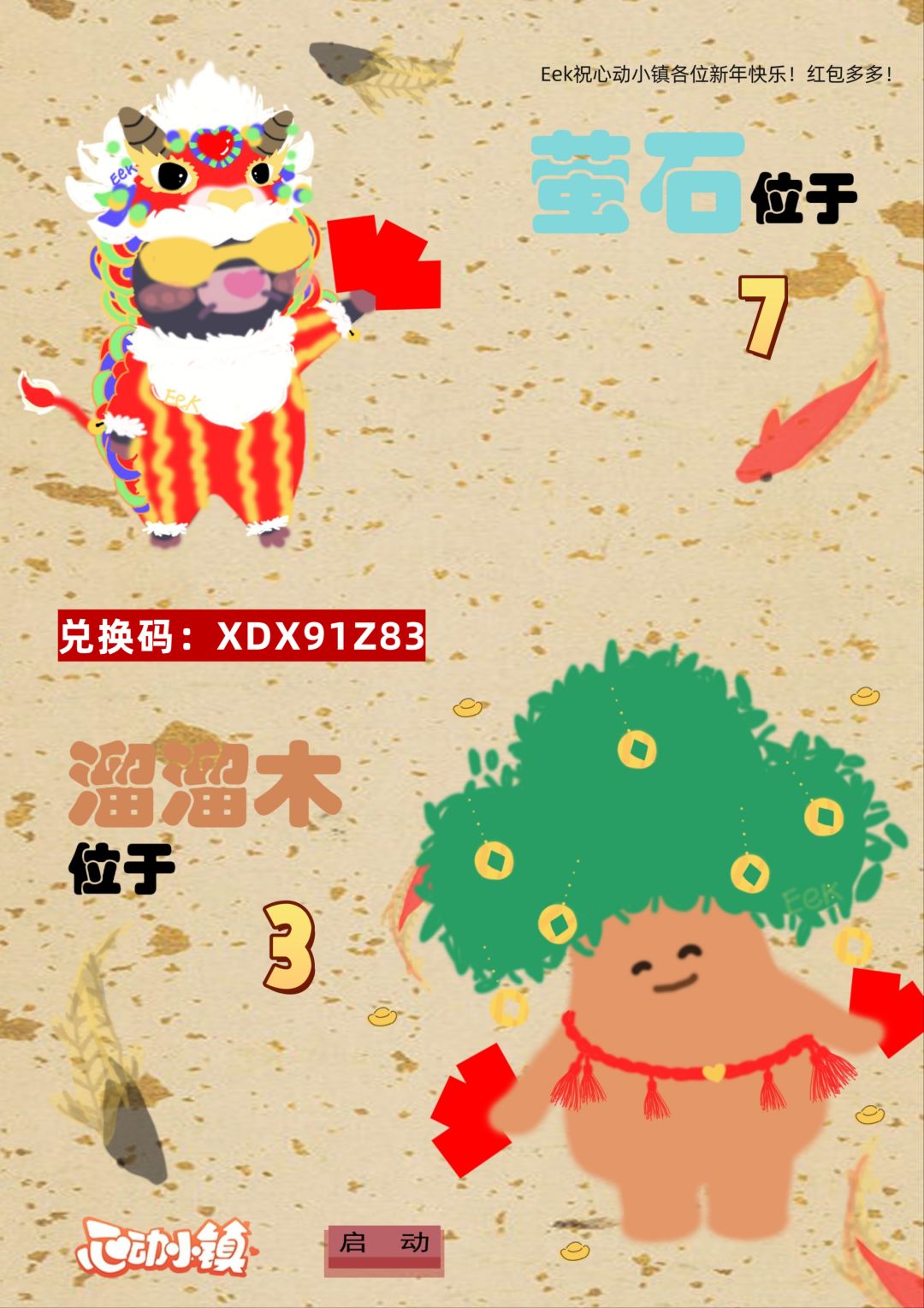 新年快乐各位 兑换码:XDX91Z83 萤石在7号位,溜溜木在3号位。 感谢阅读此次的Eek资讯。#心动小镇 #心动小镇创作计划 #心动小镇新春季 #新春季攻略征集