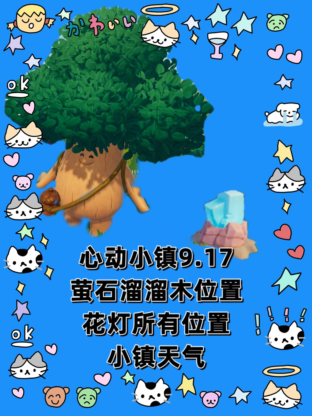 溜溜木:7号家园 萤石:6号家园 第一天花灯:在温泉山(详情看图四) 第二天花灯:在渔村东线(详情看图四) 第三天花灯:在花田(详情看图四) ✨小镇天气晴接下来一周都是晴天哦 每日更新珍稀资源/兑换码,今晚举行中秋节活动 欢迎各位小宝来参加,也欢迎小宝的关注 #心动小镇 #心动小镇房屋 #小镇心动瞬间 #心动小镇筑梦家 #小心动小镇创作家激励计划 #心动小镇奖励 #心动小镇装修 #心动小镇攻略征