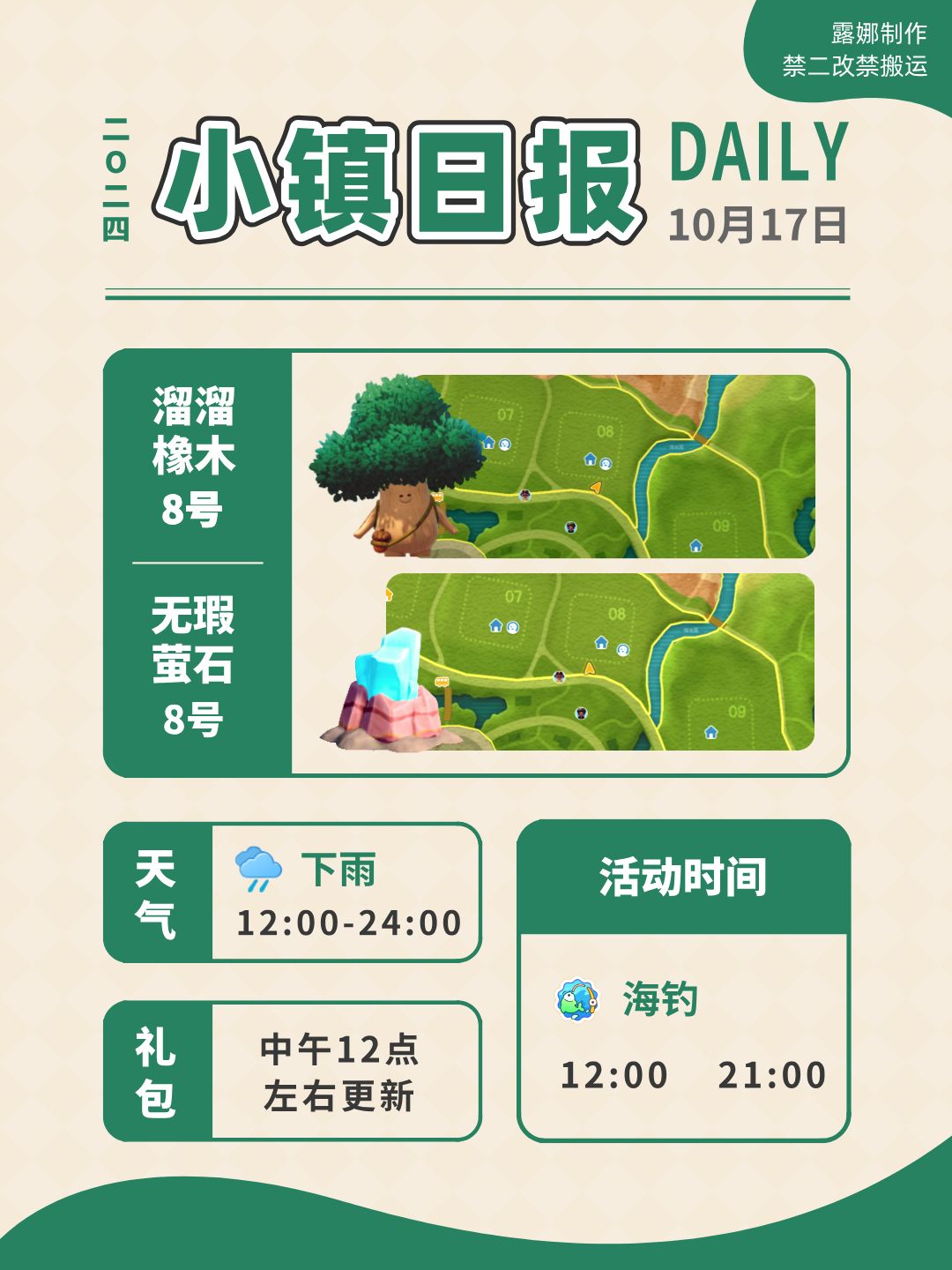 心动小镇 每日溜溜木萤石位置,时间表天气