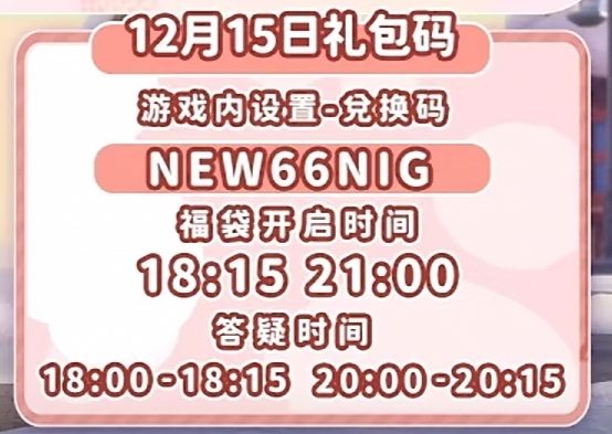 心动小镇9月14日 (潮流季) 天气:12-18雨天,18-24彩虹天! 1.溜溜木:9号(溜溜橡木) 2.无暇萤石:5号 3.今日礼包码: GIFT914 4.每周礼包码:关注微信公众号“心动小镇”领取 5.②今日花灯:深林岛。(远岛寻光) 6.彩虹朵朵在市中心公交站旁,彩虹花束在附近和家 沙滩找市长可以兑换中秋限定物品,找不到众筹箱把漂流瓶任务做了就有了! 祝你游戏生活愉快! 本周粉色泡泡