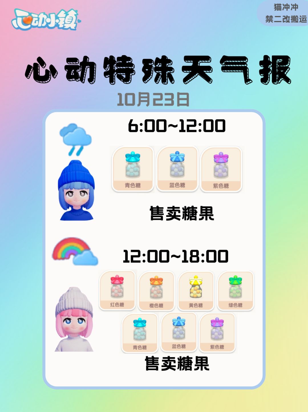 明日(10月23日)雨天/彩虹天时间#奇灵夜季 #奇灵夜季攻略征集 #小镇奇灵夜季 #心动小镇 #心动小镇创作计划
