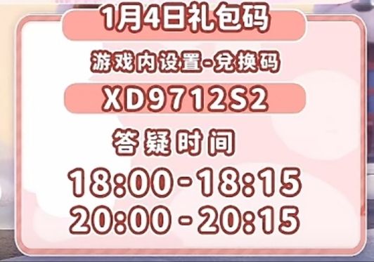 心动小镇2月24日 天气:晴 2.26和3.3彩虹天雨雪天 1.溜溜橡木:4号(溜溜木) 2.无暇萤石:11号(萤石) 3.今日礼包码:XDX4K91Z 4.新春活动兑换码:NEWYEARBABU(内含100月光水晶) 雪天朵朵在文艺街,彩虹朵朵在彩虹方向,彩虹花束在朵朵附近和家! 18:00锦鲤钓鱼事件 19:00周末音乐会 每周泡泡 心动小镇QQ1群:3890352(非官方鑫时代玩家群)#心动小镇