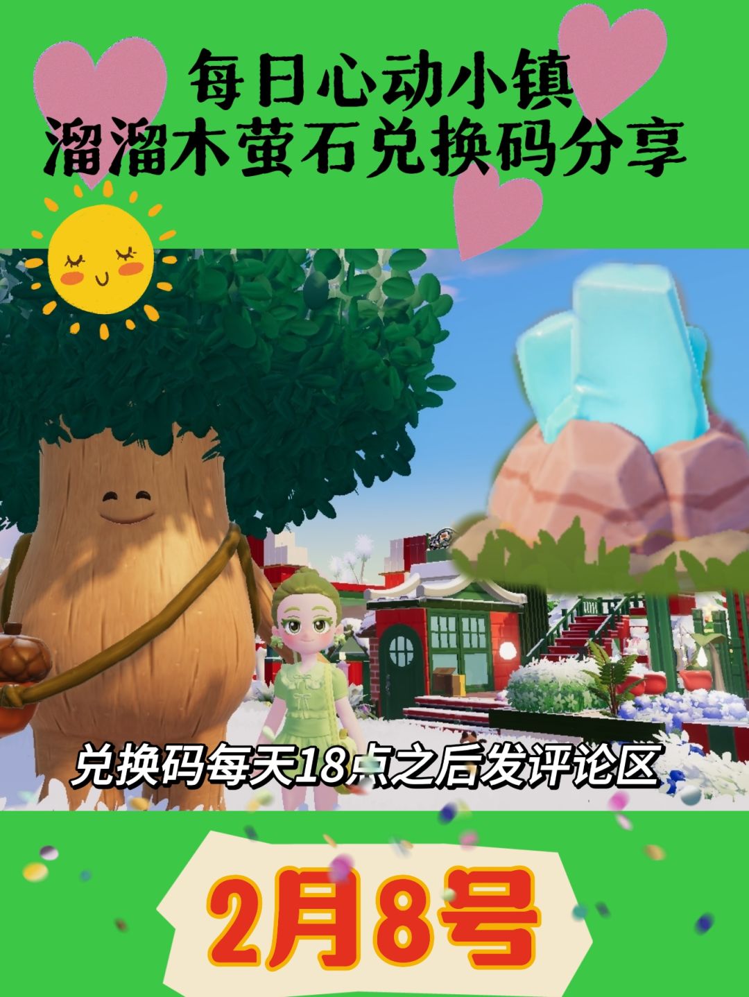 兑换码:LUV7A95X 天气:晴 无暇萤石🪨:12号房 溜溜橡木🌲:9号房 #心动小镇 #心动小镇创作计划 #心动小镇新春季 #新春季攻略征集