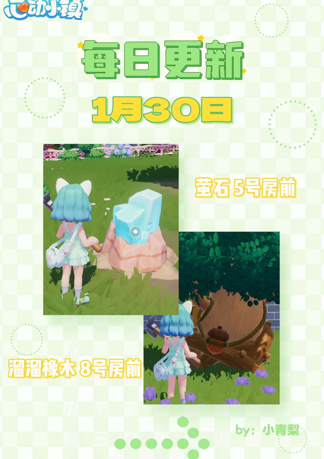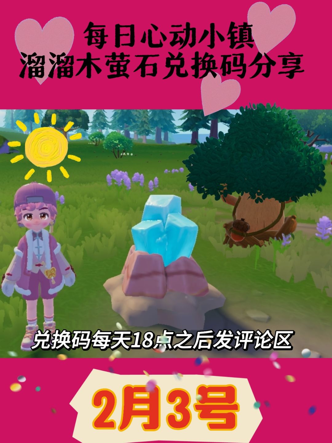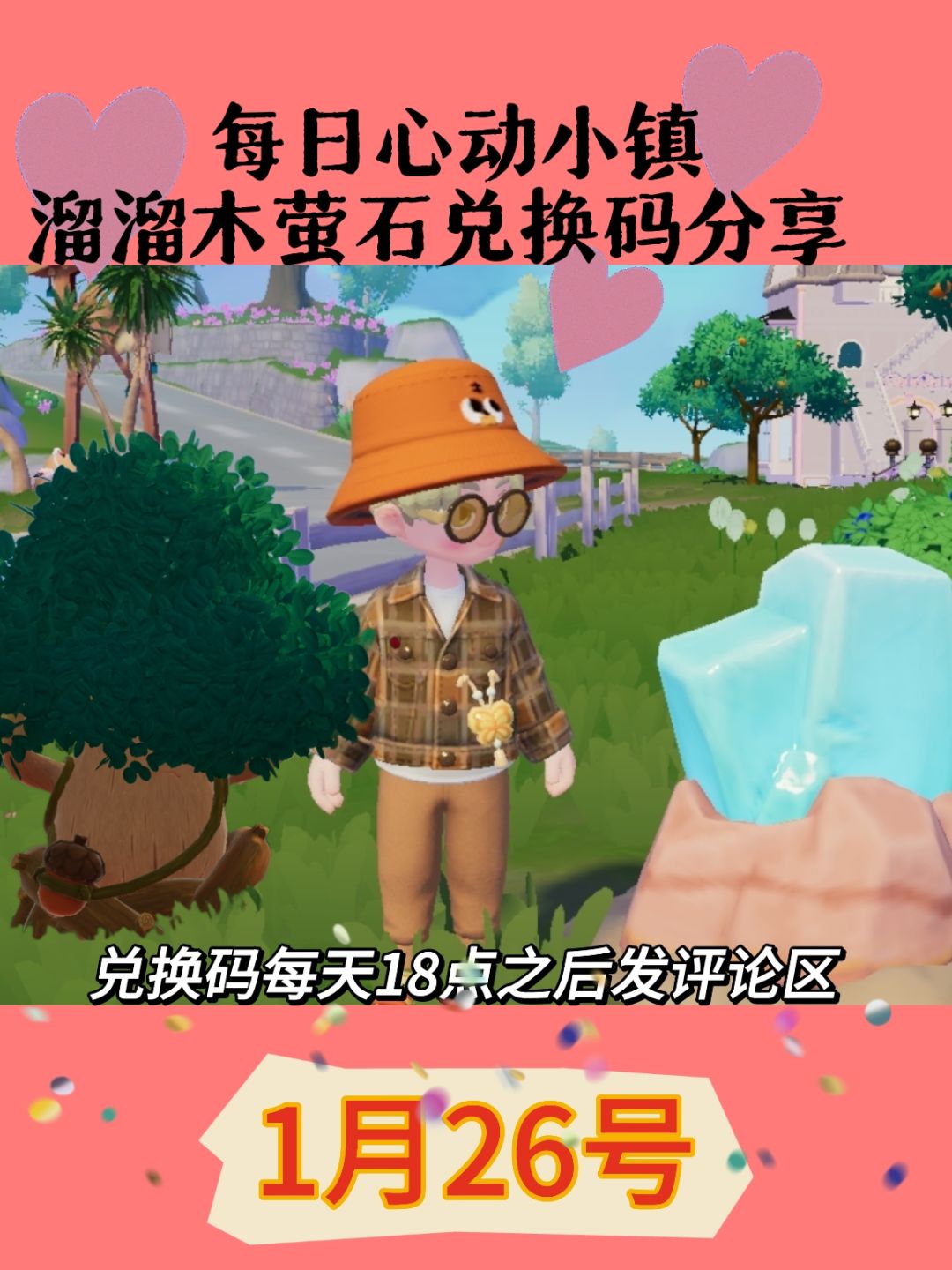 🌟心动小镇1月30日兑换码:XZ9K87RJ 💎萤石位置:5号房前 🪵溜溜橡木位置:8号房前 🌤️天气:晴 #心动小镇 #心动小镇创作计划 #心动小镇新春季 #发现好游戏 #游戏安利 #游戏推荐 #游戏福利 #游戏讨论 #游戏资讯