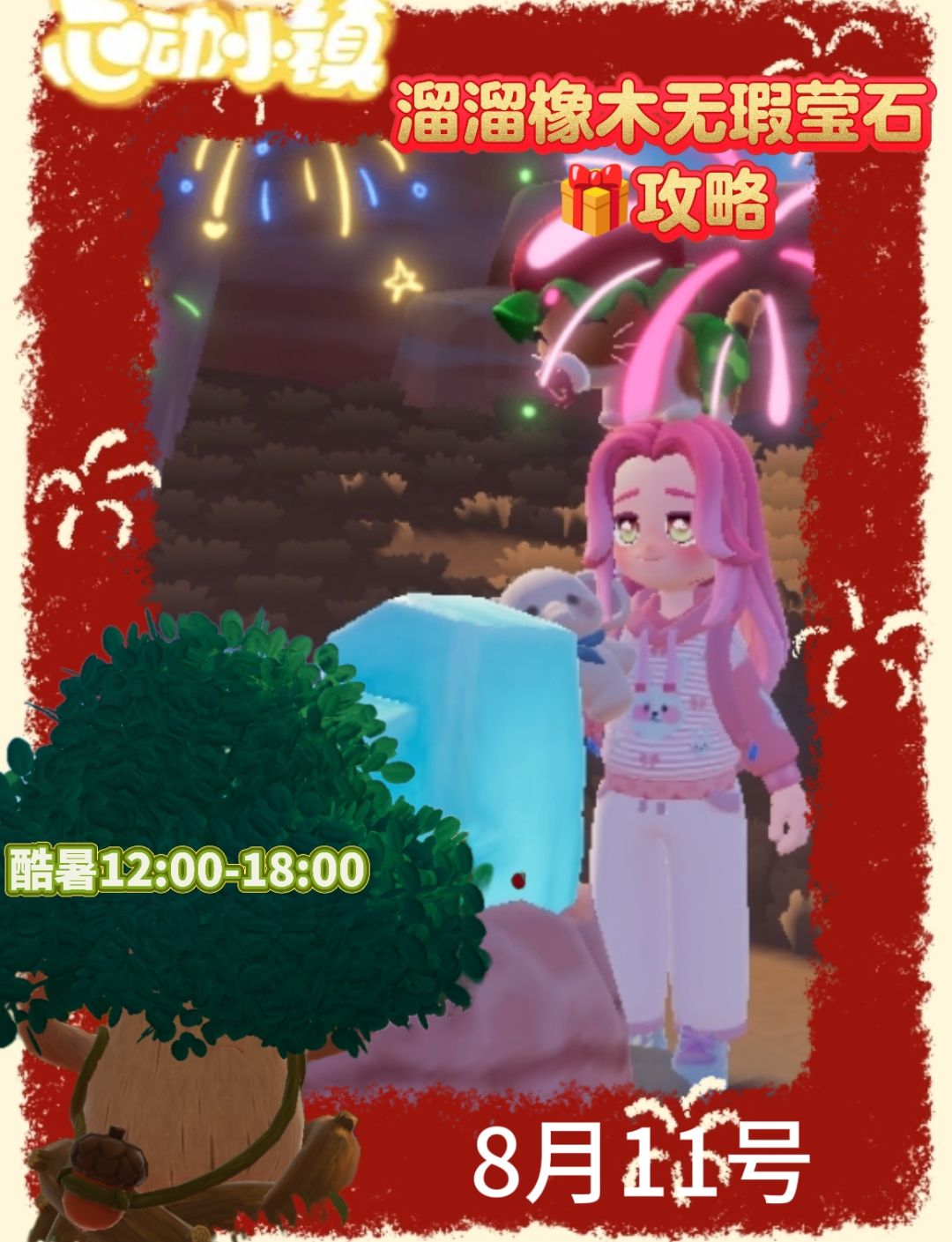 天气:🌞12:00-18:00 无瑕莹石遗迹老位置 溜溜橡木8号房前 活动时间表 11:00/20:00引虫出洞 12:00/21:00海钓 14:00黄鸭跳跳台 15:00泡泡机挑战 (限时)✨ 13:00灵能虫分散 17:00百鸟归巢 18:00异壳蟹捕捞#小马宝莉心动小镇周年联动 #心动小镇 #心动小镇创作计划 #心动小镇溜溜橡木和萤石 #心动小镇酷暑天