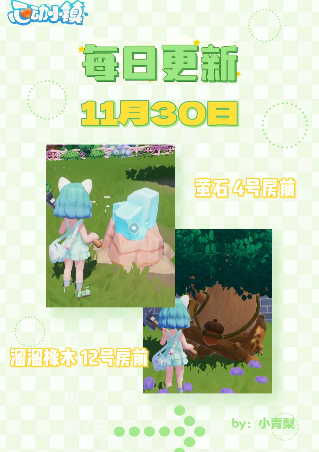 🌟心动小镇11月30日兑换码:heart332 💎萤石位置:4号房前 🪵溜溜橡木位置:12号房前 🌤️天气:晴☀️ #心动小镇 #心动小镇创作计划 #小镇奇灵夜季 #奇灵夜季攻略征集 #心动小镇安利 #心动小镇攻略 #游戏日常 #发现好游戏