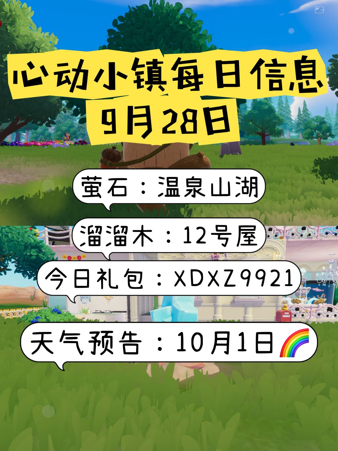 心动小镇9月28日萤石溜溜木位置天气预告 #心动小镇 #心动小镇创作计划 #我的小镇日常 #小镇奇思妙想 #游戏日常
