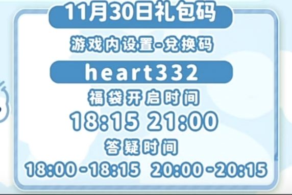 11月30日周六 天气:🌞 🌲溜溜橡木:12号房 💎无瑕萤石:4号房 💰礼包兑换码:见评论(每日18点后更新) ❤️今日活动: 12点 海钓🎣 21点 海钓🎣 #心动小镇 #心动小镇创作计划 #心动小镇攻略