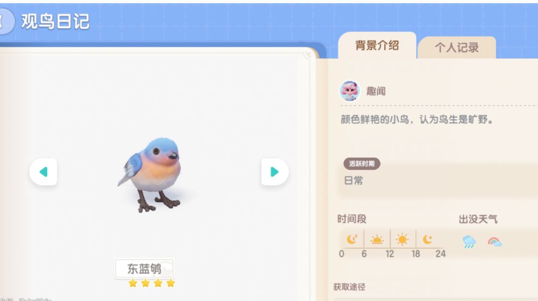 观鸟8级解锁 时间天气 全时间段 雨天/彩虹天出没 地点 城郊 5星动作要求 舒展+完美成像 彩虹天18-24时间段 高刷位置如图#心动小镇 #心动小镇创作计划