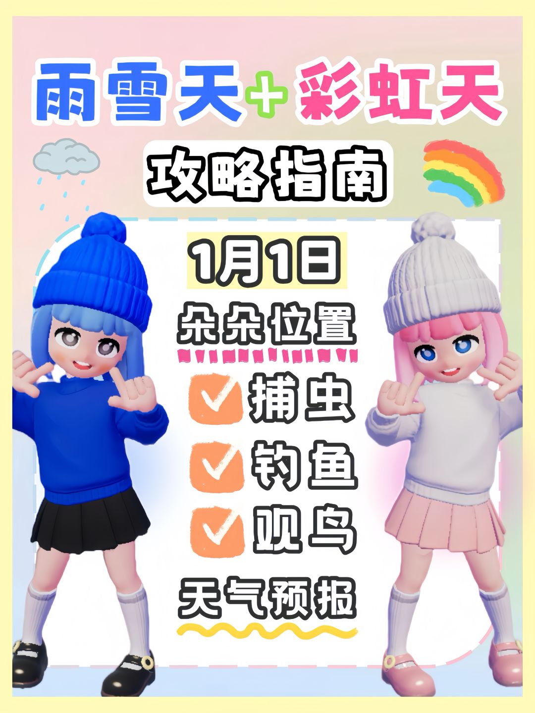 1月1日 下雪天彩虹天 详细攻略捕虫观鸟钓鱼