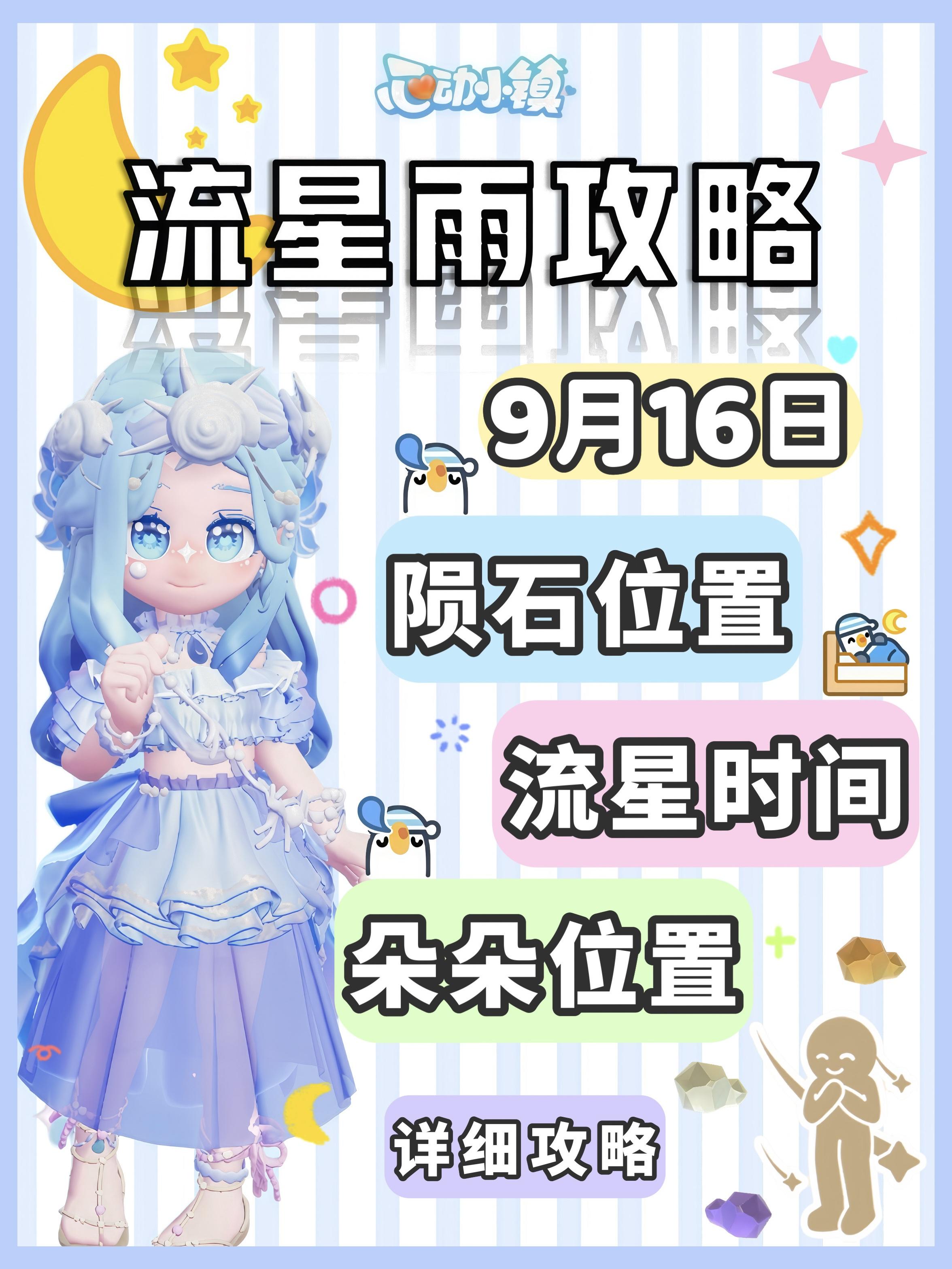 天气:流星雨☄️ 无瑕莹石2号房前 溜溜橡木7号房前 活动时间表 11:00/20:00引虫出洞 12:00/21:00海钓 14:00黄鸭跳跳台 15:00泡泡机挑战 (限时)✨引星河第1周上新 21款食谱 农作物:薄荷星芹 4只萤火虫 一种海星和3种海蜇#心动小镇 #小马宝莉心动小镇周年联动 #心动小镇引星河 #心动小镇庆典