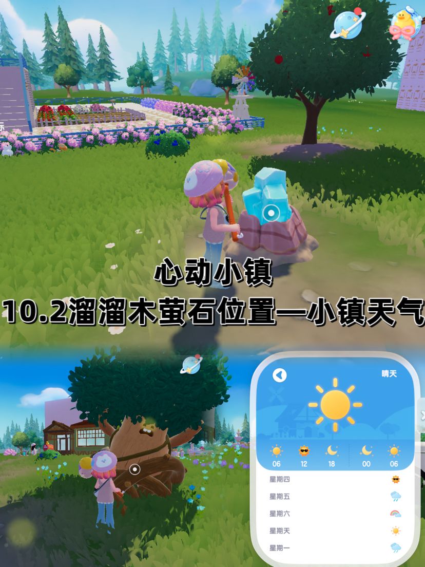 💎萤石位置:11号房前 🪵溜溜橡木位置:6号房前 🌤️天气:6点到12点下雨🌧️ 12点到18点彩虹🌈 #心动小镇 #心动小镇创作计划 #心动小镇兑换码 #心动小镇攻略 #奇灵夜季攻略征集 #小镇奇灵夜季 #游戏日常