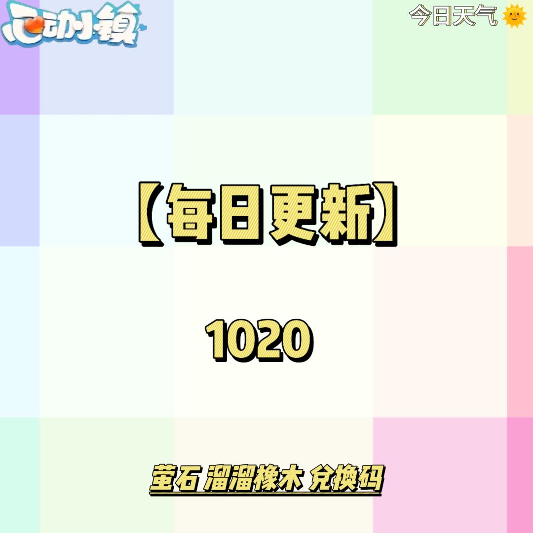 今日天气 晴🌞 萤石:【7号房门前】 溜溜橡木:【2号房门前】 今日兑换码:【NEWLUVU8】 溜溜橡木*2 灵动维修盒*2 苹果*20 兑换码评论区可直接复制 tips:游戏主界面右上角“手表”-“设置”-“兑换码”进行兑换 今日全镇免费事件: 【海钓】12:00-12:10 21:00-21:10 大家记得完成万圣节奇灵夜季活动每周的7个小任务哦~(每周六更新下一周任务) 宝子