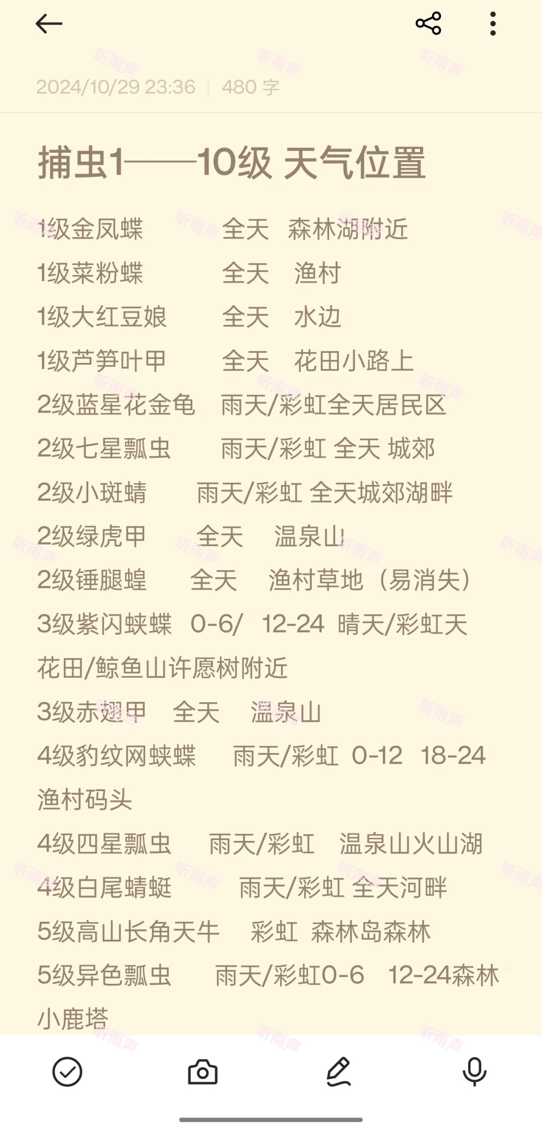 ✨✨宝子们好啊今天给大家带来 心动小镇奇灵夜季1~10级捕虫天气位置! 希望能帮到大家。 🌈🌈由于都是手输❗❗可能有个别遗漏还请大家及时补充哦。 点赞加关注不迷路,后续还会更新! #小镇奇灵夜季 #心动小镇 #奇灵夜季攻略征集