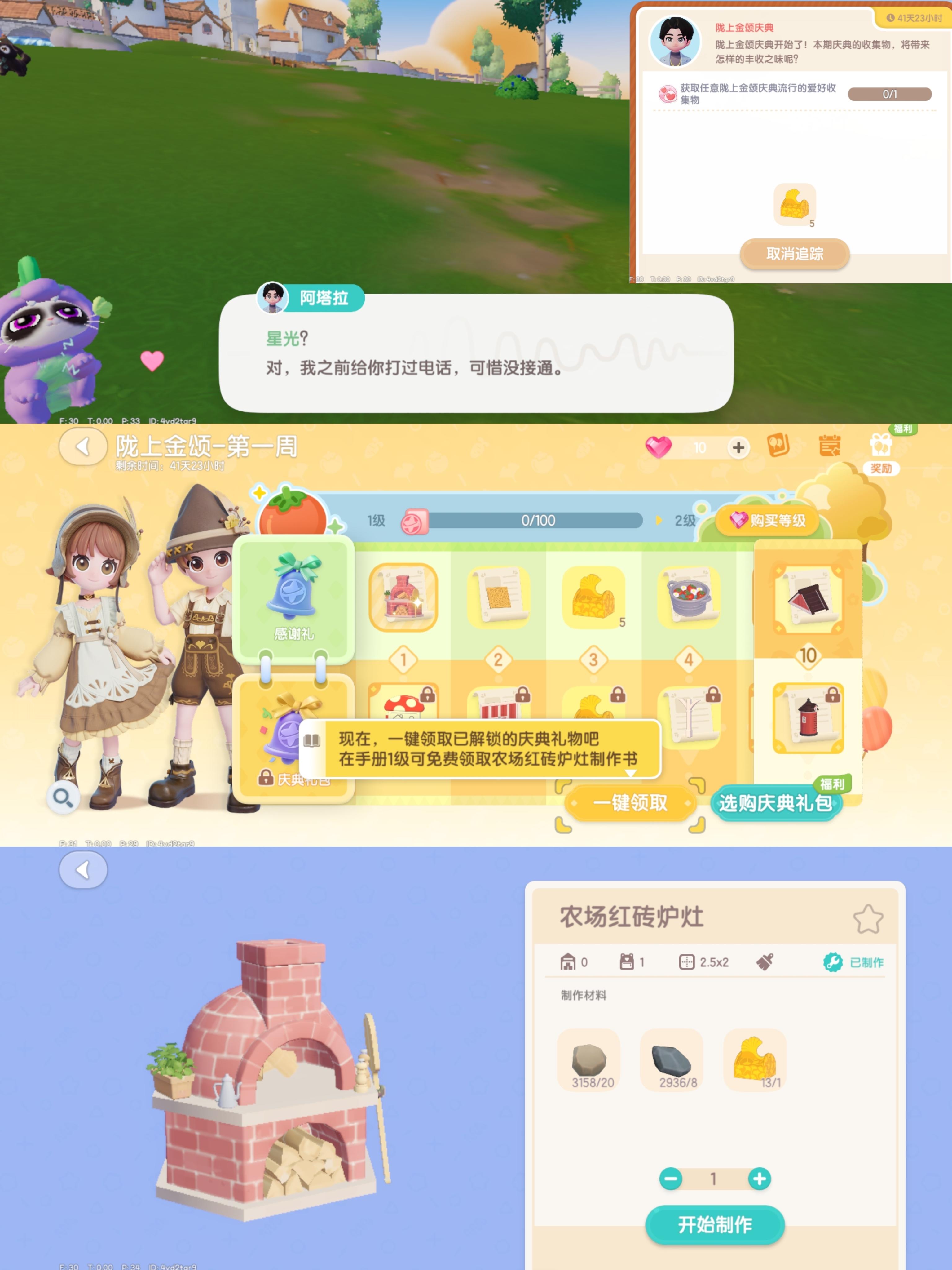 首先去接阿塔拉镇长电话,开启引星河 然后去手册那里领取炉子制作书 之后再去马西莫的商店去买 食用星星粉和发酵面团,一天限购50个 之后使用制作台制作星球灶台 材料:木材*9+矿石*10和1个材料包 做好之后可以开始肝21种庆典食谱 包含3大类型 第一类型-薄荷奶食谱 1.星空水果薄荷奶,材料:星星粉+任意水果+牛奶+薄荷,售价为240金币 2.星空苹果薄荷奶,材料:星星粉+苹果+牛奶+薄荷,售价为