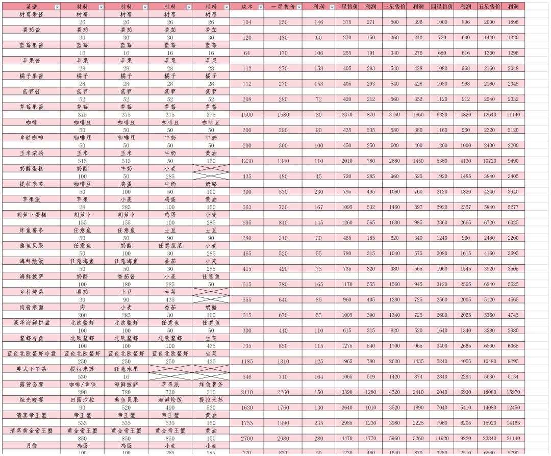 翻了很多攻略感觉他们算的都不对,自己做了表格。 卖价做成本计算利润 所有价格都是一星 二星作物直接卖 任意鱼都算50 OK啊,这个算法主要是把种植成本和时间成本算作钱了,不喜欢可以看看别的博主的,没必要反驳我,我是敏感脆弱的小女生。 更正了一下,加了高星利润。 #游戏攻略 #新手攻略