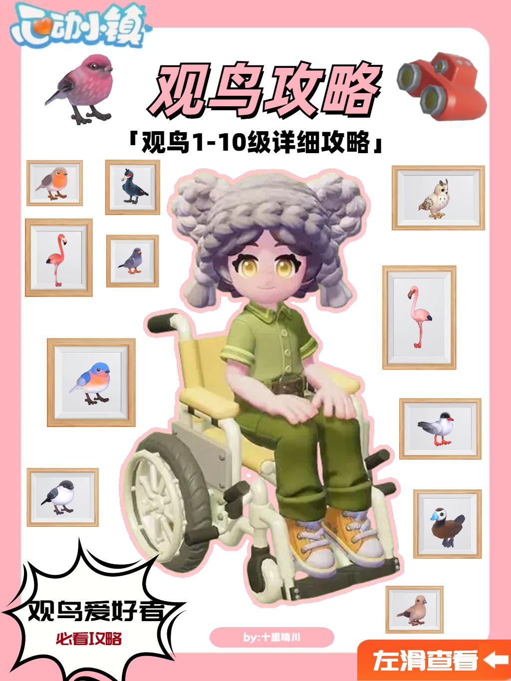 观鸟1-10级全部攻略(含等级,图鉴,名称,出没时间,出没天气,位置,舒展动作时间段) p2:观鸟1级攻略 p3:观鸟2级攻略 p4:观鸟3-4级攻略 p5:观鸟5-6级攻略 p6:观鸟7-8级攻略 p7:观鸟9-10级攻略 点赞收藏不迷路~ #心动小镇 #小镇奇灵夜季 #心动小镇创作计划