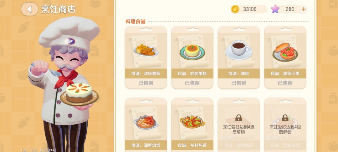 感觉新手前期攻略还是少点,走了不少弯路,并且是在临近潮流季入坑,玩的身上钱紧紧巴巴的,分享一下目前总结的心得。 爱好方面的优先度,烹饪>园艺>钓鱼>捕虫=观鸟>养猫 以上排行是为积攒前期资本为主要 这游戏赚钱主要靠烹饪卖菜,而卖菜的利润影响最大的就是菜品星级,星级的波动影响最大又是烹饪等级,所以烹饪为主要升级爱好,解锁的菜单固然重要,但更香的是高星级菜品概率提升 食材星级也会影响菜品星级,但影响没