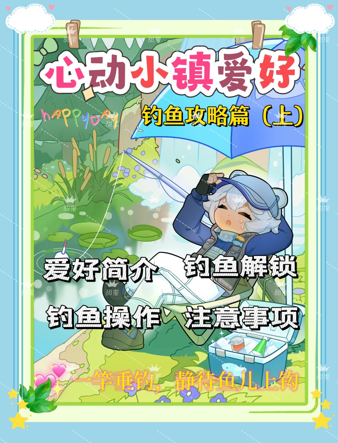 《心动小镇》手游爱好攻略——钓鱼篇(上)来啦!如何解锁爱好?如何操作钓鱼?钓鱼注意事项有哪些,新手入门看这一篇就够了! (这篇主要讲解操作手法和注意事项,分布请看钓鱼攻略——下篇[表情_大笑]) 1.爱好玩法介绍 《心动小镇》模拟经营是主要玩法之一,分为6大爱好:【捕虫】、【烹饪】、【观鸟】、【养猫】、【园艺】、【钓鱼】。 我们根据新手指引,前往小镇爱好引导师处,提交爱好拓展券就可以解锁相应的爱好