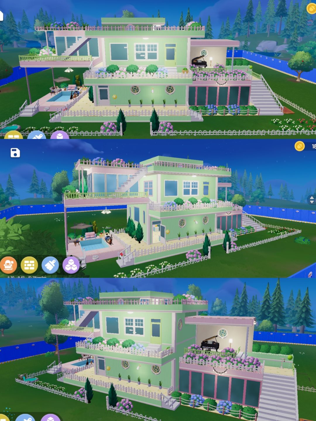 码住![表情_开心][表情_+1] 参考一位大大的绿色平层改装的粉绿大平层别墅,小三层,平民可建![表情_比心] 咱就是说一整个小清新房子谁不爱呀![表情_+1] 蓝图各角度图纸附上[表情_星星眼]点赞自取噢[表情_点赞] 需解锁六块地皮[表情_猫咪举手] 主色:粉、绿、蓝、白[表情_比心] 功能区:游泳池区、钢琴区、种地区、厨房、客厅、卧室【房子内部自行布置】[表情_猫咪举手] 绣球花,草丛,灌