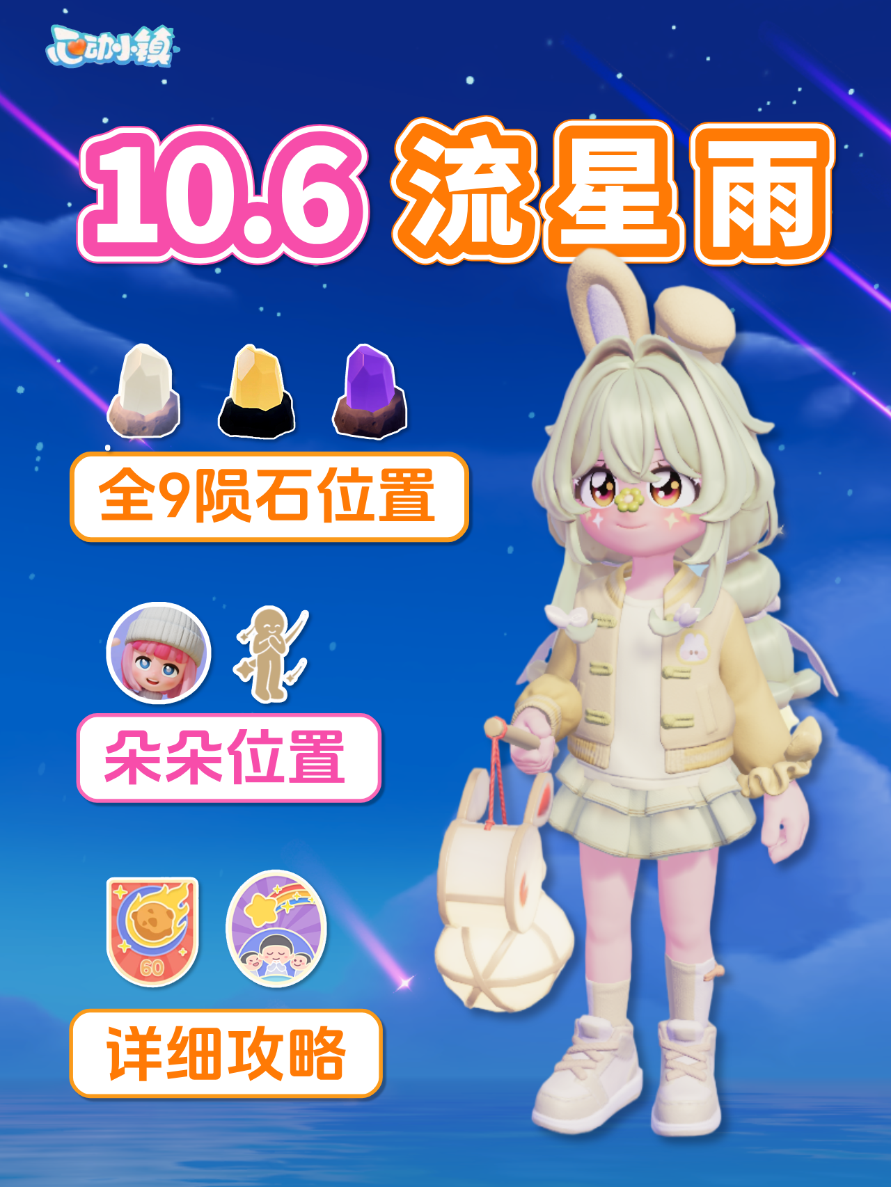 下雨天时间:12:00-18:00 雨天朵朵位置:文艺街 彩虹天时间:18:00-24:00 彩虹朵朵位置:随机刷新 1. 寻找3朵彩虹花束、寻找彩虹朵朵购买彩虹糖 2解锁彩虹天才会出现的五星爱好图鉴 3.彩虹天采集果子、砍树、石头有额外加成,比平时 获得的多好多 4.仙人掌沙雕和尼尼熊雪雕五星图鉴 另外彩虹糖还没凑齐的宝子们千万不要错过了啊 #心动小镇 #心动小镇创作计划 #心动小镇新春季 #心