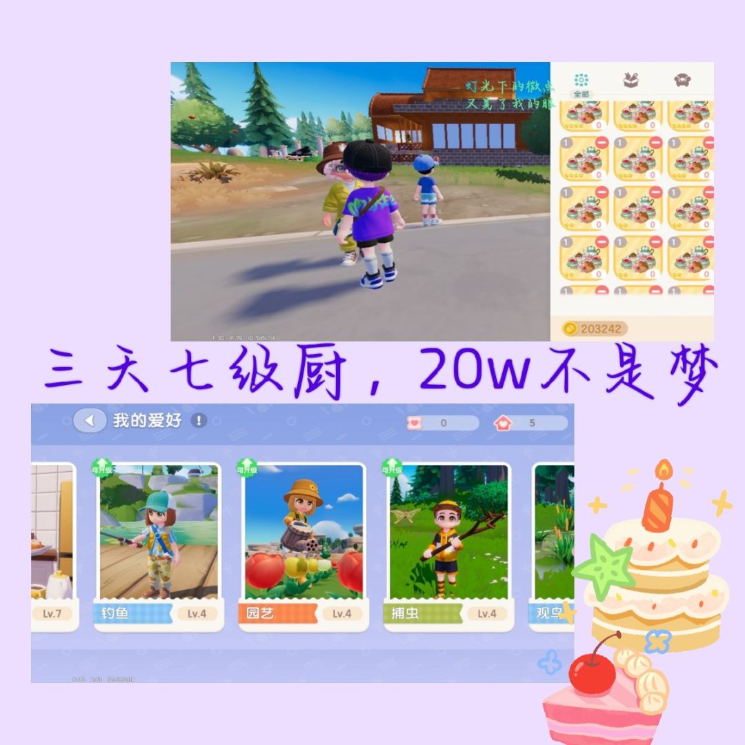 第一天可以达到五级厨子,后面两天一天一级完全可以达到 第一天卡等级五级,可以拿到四张票!!! 种菜,钓鱼是开始主线选择,剩下一个选择厨子。 第一天厨子五级即可拿完所有票七张。升级过后,余下一张票,【钓鱼一级可以拿完两张票,种菜两级也可以拿到两张票(但是,种菜的,第二张票很难拿,需要三种植物达到四级)】所以如果种菜第二张没拿到,正常来说是有三张。 【第一天,拿铁为主。解锁延伸菜谱需要自己手动切换食材
