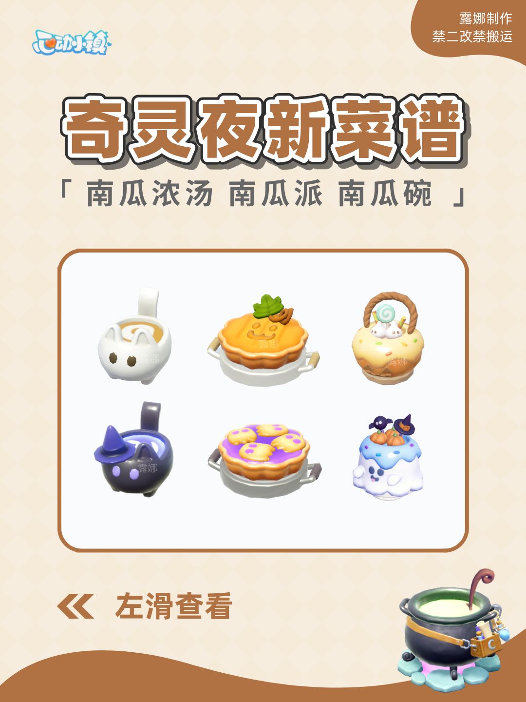 奇灵夜新菜谱 特殊烹饪厨具:怪奇坩埚 奇灵夜食材:南瓜,幽幽棒棒糖,南瓜棒棒糖(单卖时按南瓜算) 奇灵菜谱解锁用对应怪异菜谱,奇灵夜食材选幽幽棒棒糖做 例:奇灵南瓜碗,选怪异南瓜碗食谱奇灵夜食材选幽幽棒棒糖 怪异南瓜浓汤,怪异南瓜派,怪异南瓜碗 奇灵南瓜浓汤,奇灵南瓜派,奇灵南瓜碗 #心动小镇 #小镇奇灵夜季 #奇灵夜季攻略征集 #心动小镇攻略 #游戏种草计划