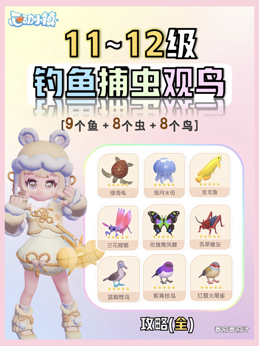 心动小镇 11-12级捕虫钓鱼观鸟图鉴攻略