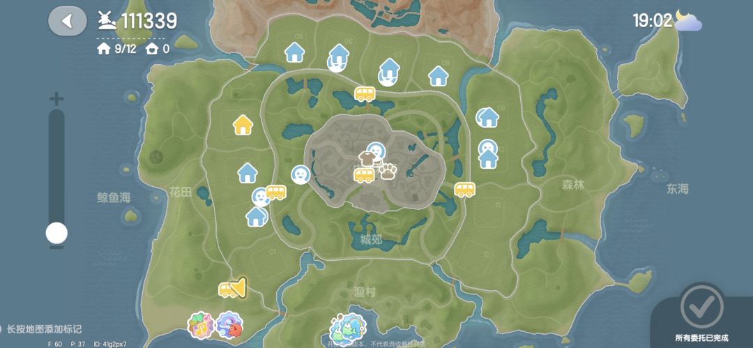 ➡️5月12日雨天12~18点,开图鉴路线图。 ➡️磨刀不误砍柴工,提前规划好路线,帮助你高效率开图鉴!!! ➡️温馨提示:种菜 ,雨天 ➡️这篇攻略是推荐开雨天的,不带全天气玩 ➡️导游发车啦,请各位检查好随身物品(修理盒、食物、鱼饵、鱼尾、香水)并整理好背包。 ➡️此次共有三站,分为内圈、中圈、外圈 ➡️(各位可以找最近的公交站传送到中心广场零金币,附近没有公交站,可以打开手册传送