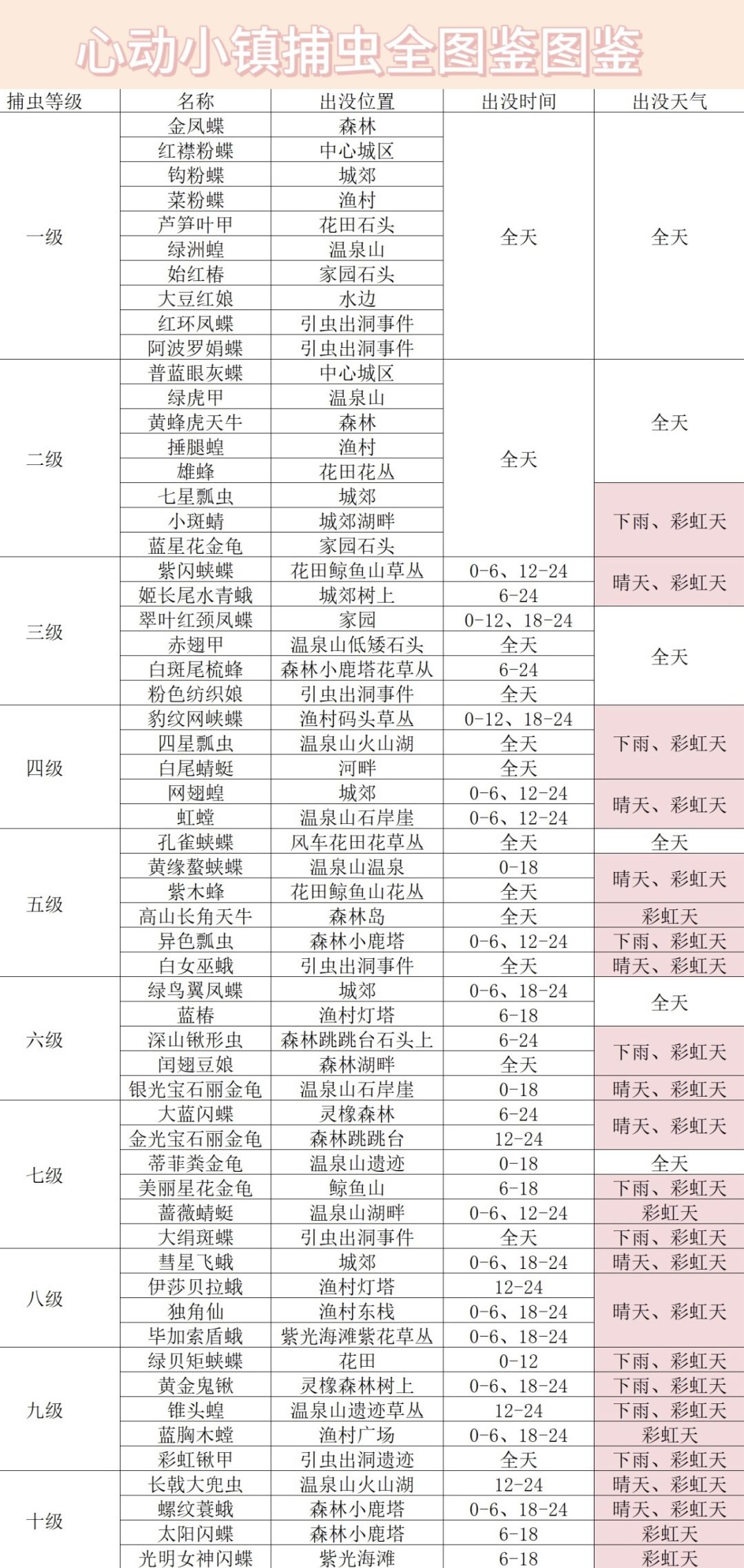 小镇捕虫全攻略 | 位置地点时间价格等级