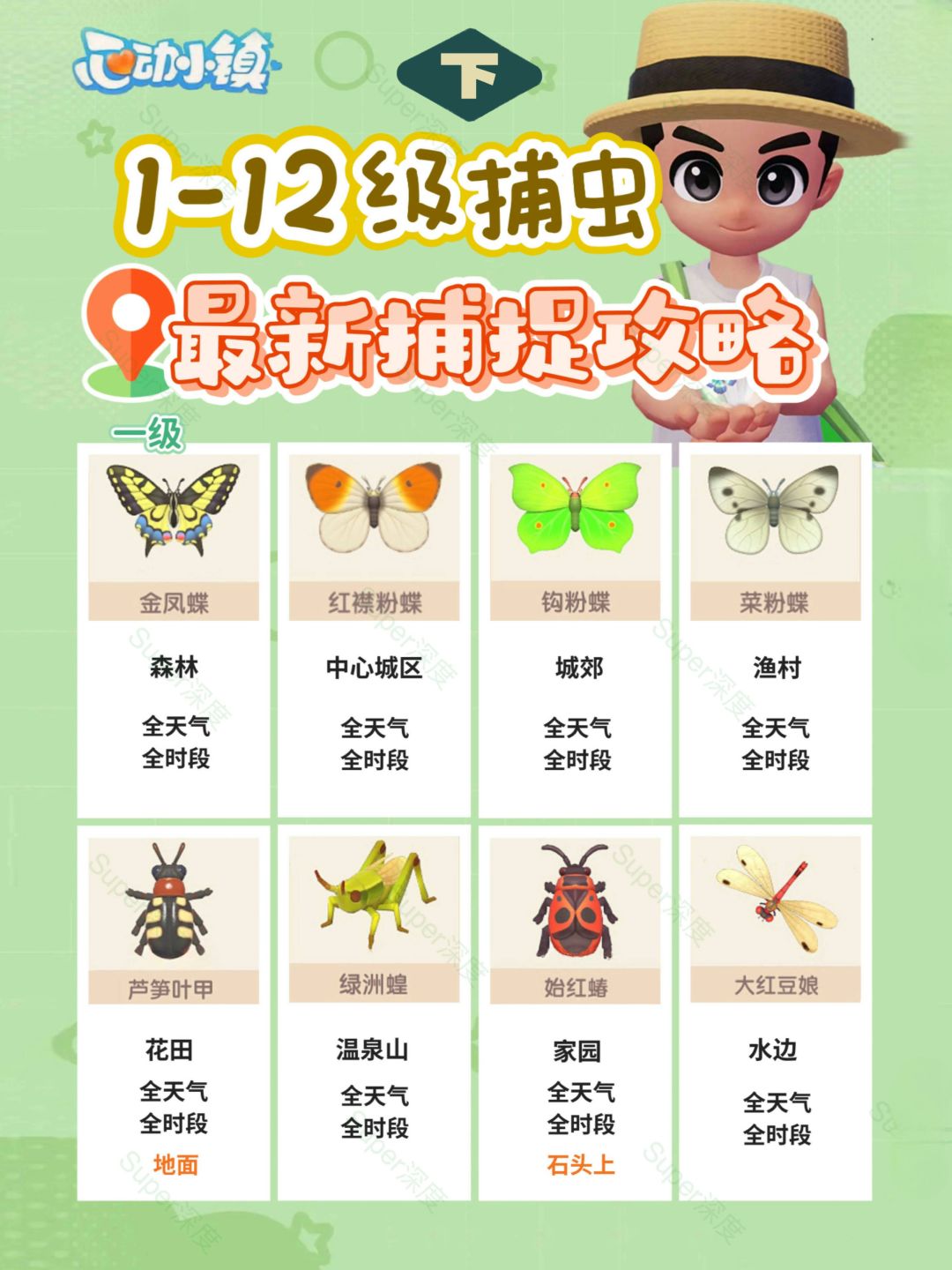 捕虫1-10级全攻略(含潮流季限定虫) p2:潮流季限定虫攻略 p3:捕虫1-2级的攻略 p4:捕虫3-5级的攻略 p5:捕虫6-8级的攻略 p6:捕虫9-10级的攻略 点赞收藏不迷路~ #心动小镇 #小镇奇灵夜季 #心动小镇创作计划