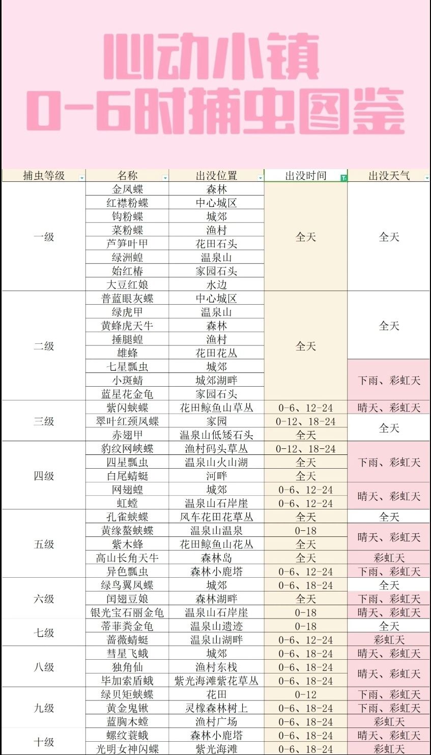 还找不到虫子?这有心动小镇捕虫全图鉴攻略