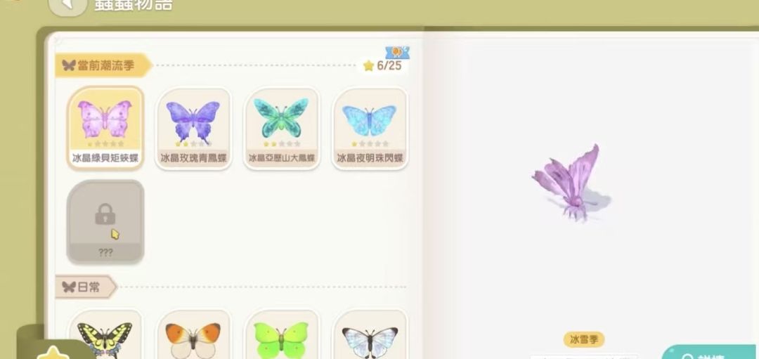 要求捕虫等级:1级 庆典虫数量少,基本一个区域1-3只 建议开最低画质捕捉,不然花草挡视线 捉光后,需要一段时间刷新 建议可以来回跑动,捉光就去下个区域 鲸鱼山>草原湖>花田>沙滩 共6只限定虫 ,都是全天气全时间 棒棒糖饱藏蜻蜓 草原湖 水边/草丛上 蝴蝶酥饱藏蝴蝶 花田-风车花田 花丛 果冻饱藏萤火虫 花田-风车花田 草丛/花丛 泡芙饱藏瓢虫 花田-鲸鱼山 在飞/草丛/花丛 糖豆饱藏蝴蝶 花田
