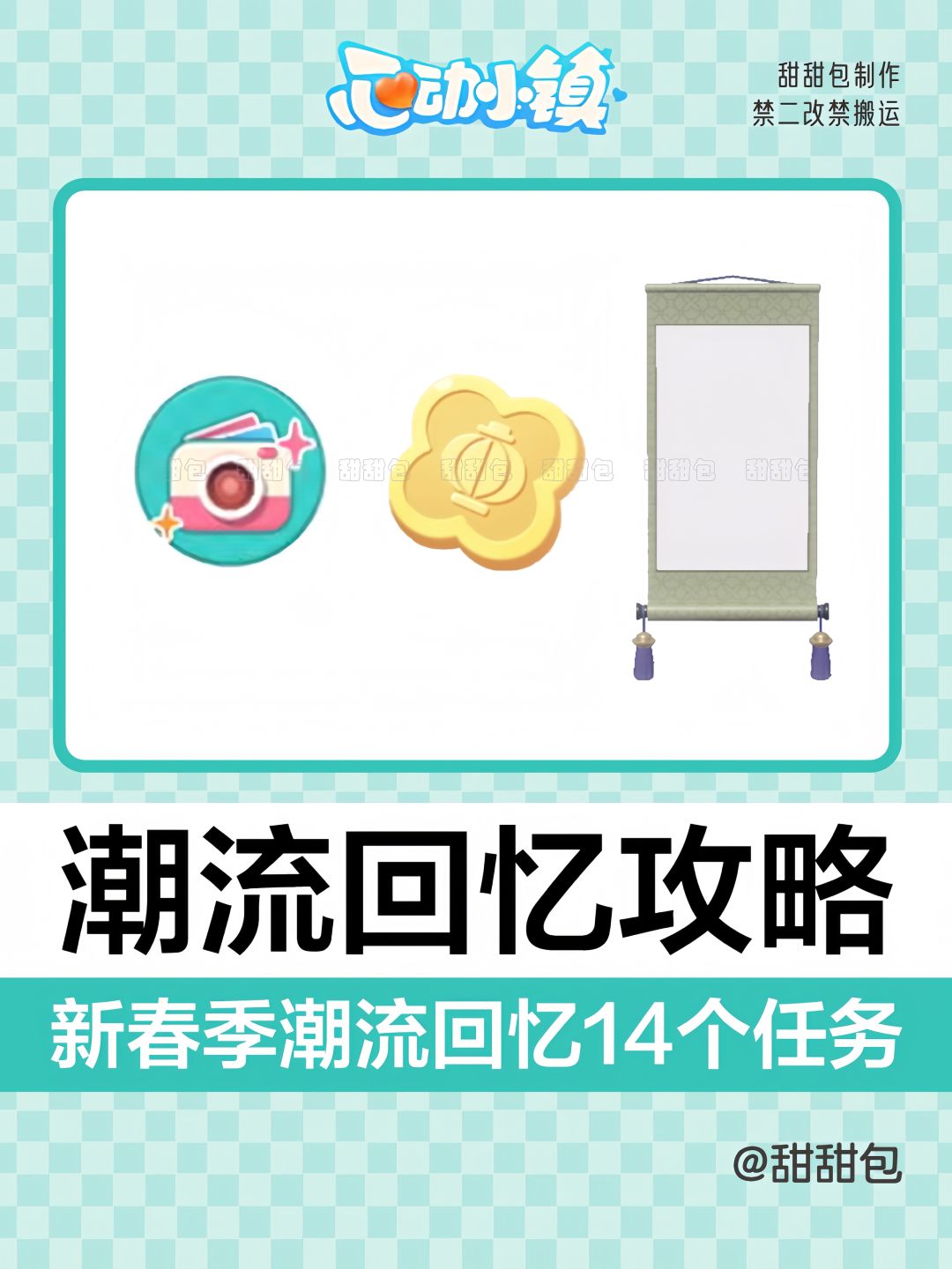 ① 【新春潮流回忆】任务: 在渔村找到【阿塔拉】,选择【新春回忆】,他会让你完成任意新春潮流回忆任务。 完成【阿塔拉】的【新春回忆】任务,可以获得【紫色壁挂中国结】奖励。 ② 第七周【潮流回忆】活动: 一共有14个任务,其中有13个拍照任务。 最后一个任务:完成13个新春拍照挑战后,可以获得【画卷相框】奖励。 #心动小镇 #心动小镇创作计划 #心动小镇新春季 #心动小镇攻略 #心动小镇日常 #新春
