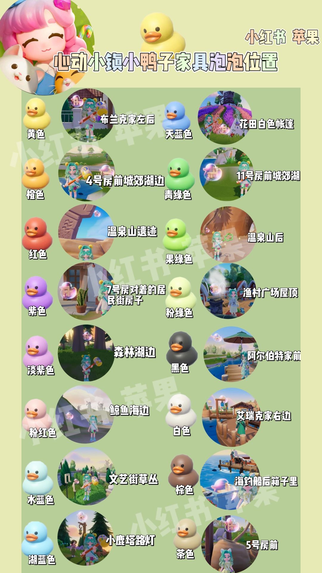 心动小镇小鸭子家具泡泡位置拍照位置。