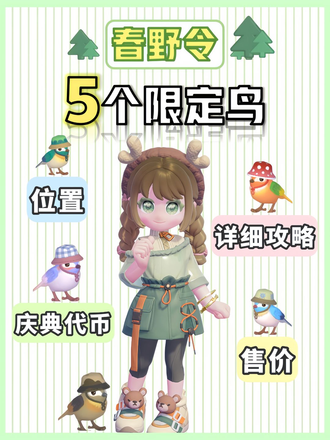 春野令新潮流季庆典全攻略总页面 已更完 ✓钓鱼进度100% 差一个五彩大概率第二周鱼潮的时候出现 ✓捕虫进度100% ✓料理进度100% 主要材料,春野令虫子,春野令鱼,马西莫两个新食材,水果等 ✓园艺进度100% 布兰克那儿买迎春花(好看) ✓观鸟进度100% 第二周开 开荒人员:本肝帝团全体成员 攻略制作:雪琼姐姐 。 #心动小镇 #小镇春野令攻略征集 攻略和资讯综合贴↓ https://