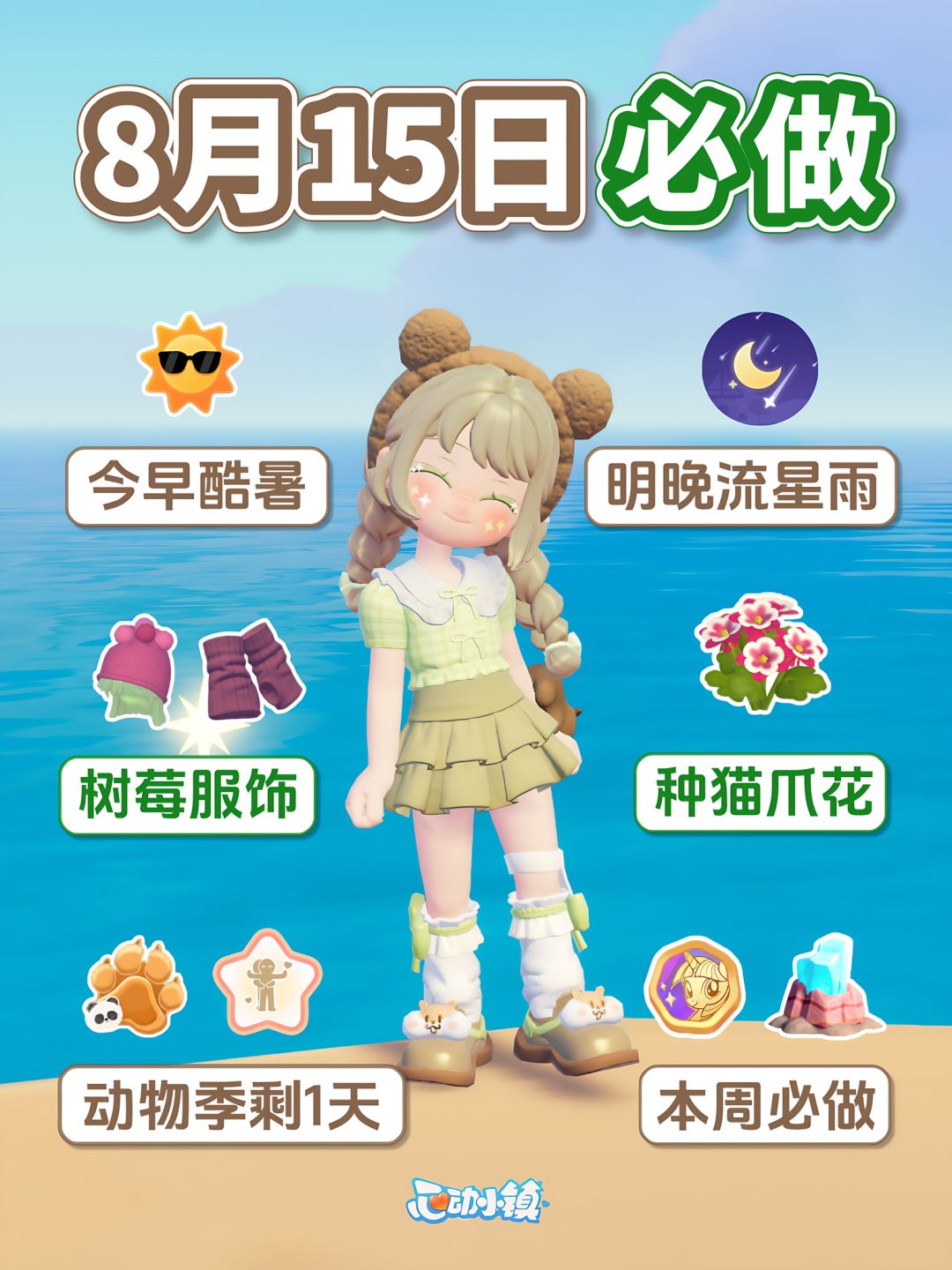 8月15日动物季最后1天 种猫爪花 明晚流星雨