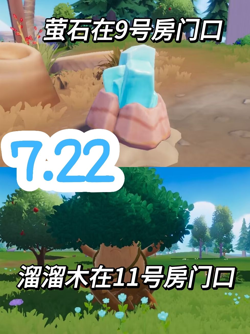 如图萤石在1房间位置,溜溜木在9号房间位置。#心动小镇