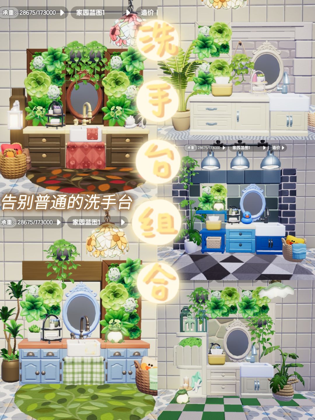 厕所空间太大总是显得空旷怎么办?洗手台家具看腻了怎么办?嘿嘿!这期的洗手台组合你一定要看看! 洗碗池+镜子+壁挂式花坛+厕所摆件+一些柱子 就可以得到一个非常精致漂亮的洗手台!! 无论是放在厕所里还是厕所外面都非常漂亮呢! 瓜桑这里只放了5个组合给宝宝们参考! 宝宝们可以自行发挥想象力组合出更多漂亮的独一无二的洗手台! (创作不易求求三连!分享更多内饰组合、房屋教程) #心动小镇 #心动小镇创作计