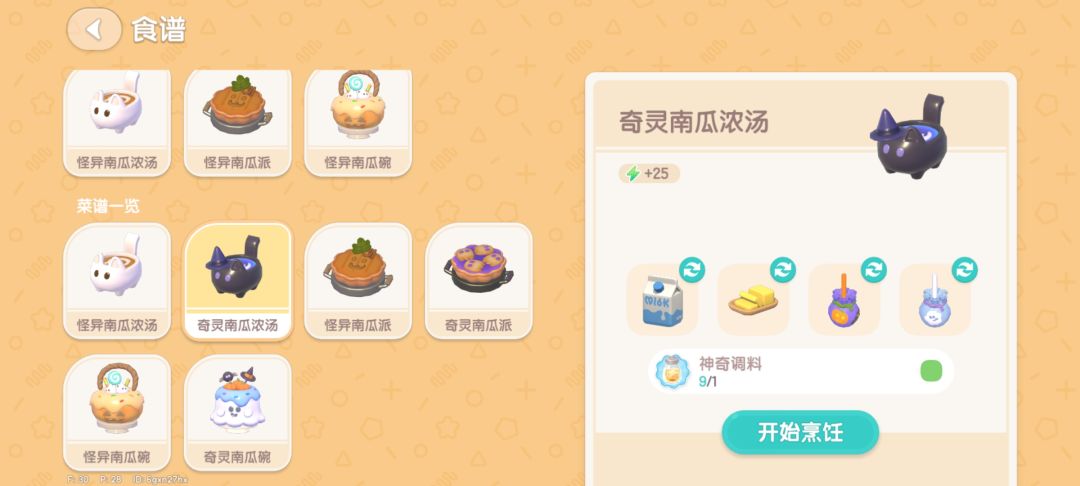 奇异南瓜浓汤:牛奶✚黄油✚南瓜棒棒糖✚南瓜/幽幽棒棒糖/南瓜棒棒糖 奇灵南瓜浓汤:牛奶✚黄油✚南瓜棒棒糖✚幽幽棒棒糖 奇异南瓜派:小麦✚鸡蛋✚南瓜棒棒糖✚南瓜/幽幽棒棒糖/南瓜棒棒糖 奇灵南瓜派:小麦✚鸡蛋✚南瓜棒棒糖✚幽幽棒棒糖 奇异南瓜碗:小麦✚鸡蛋✚南瓜棒棒糖✚南瓜/幽幽棒棒糖/南瓜棒棒糖 奇灵南瓜碗:小麦✚鸡蛋+南瓜棒棒糖✚幽幽棒棒糖 ♥奇灵开头的食物就是要用幽幽糖来做,别记错了♥#心动小
