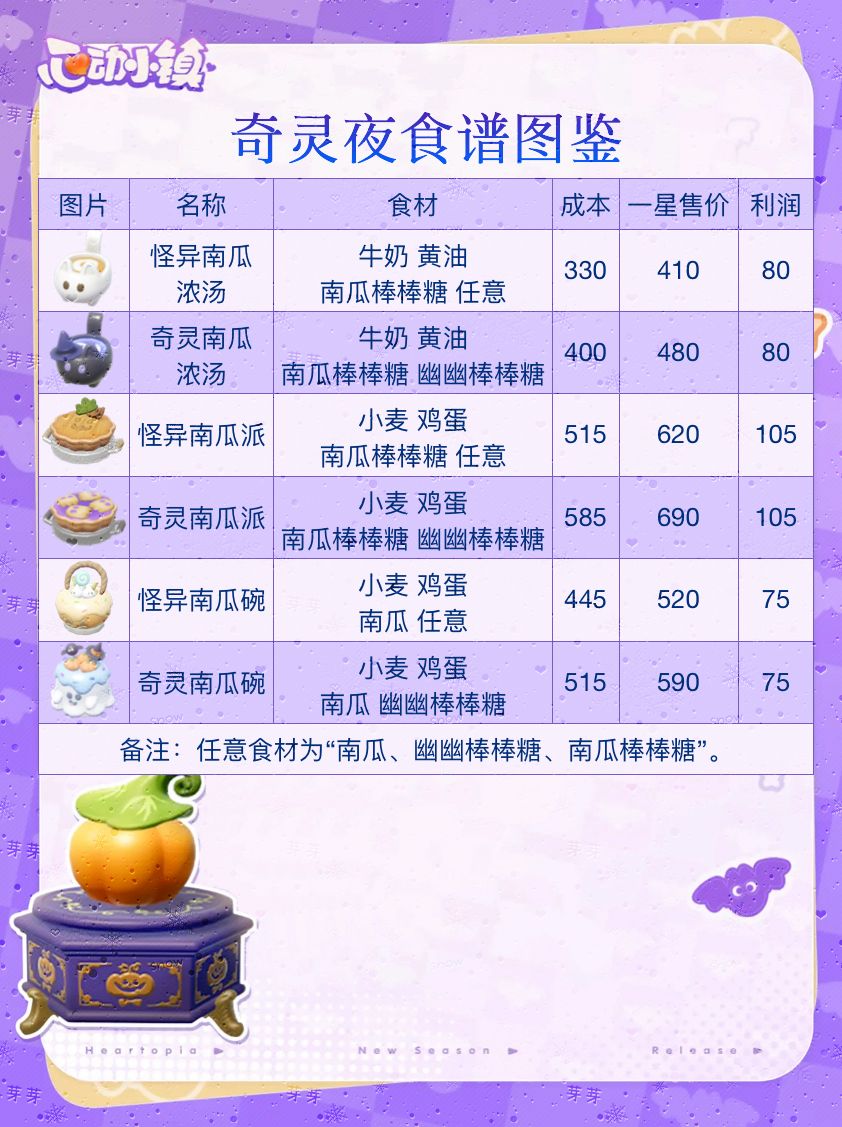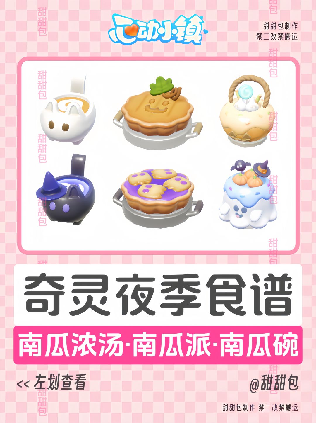 p1p2为食谱图鉴和售价 p3为食谱获取方式 p4为棒棒糖获取方式 可以囤一些神奇调料来快速出高星,奇灵夜食物对比于沙滩乐园季没有那么高利润委屈[表情_委屈] #心动小镇 #奇灵夜季攻略征集 #小镇奇灵夜季 #心动小镇创作计划 #心动小镇攻略