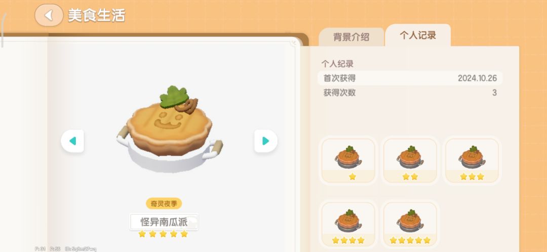 个位数的都是加了料的。后两个没有加料,48次出了五星。(烹饪10级) 个人感觉比上一个季节快出五星。 #心动小镇食谱攻略