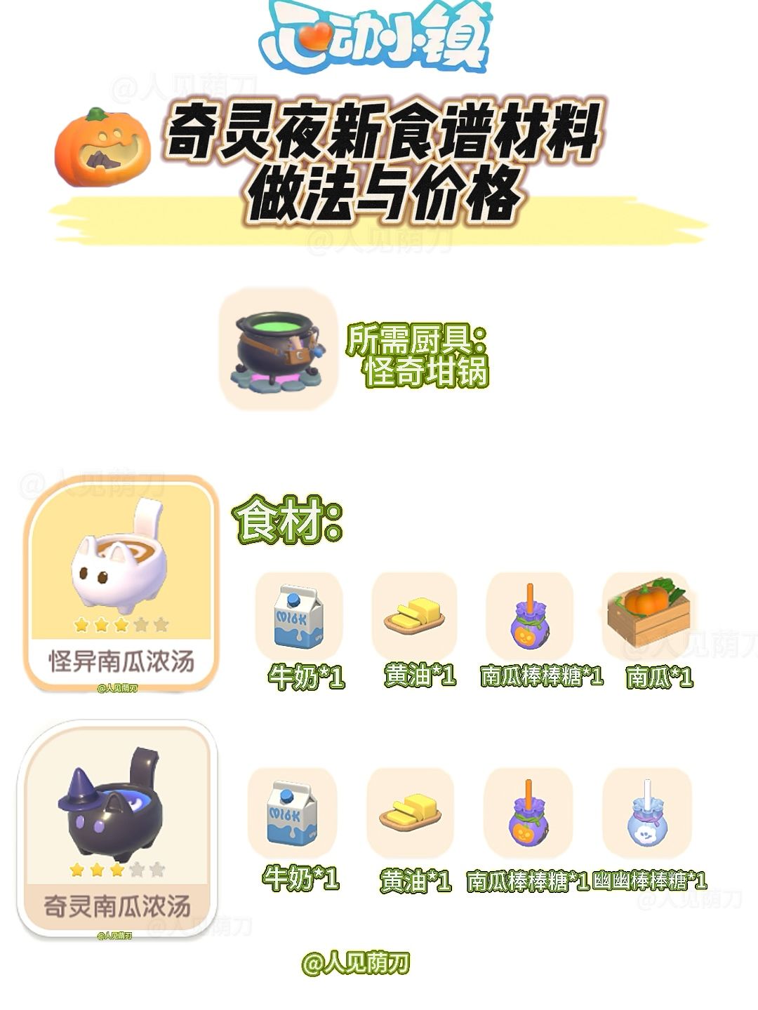 奇灵夜食谱来啦,分为普通食谱和奇异食谱,奇异食谱只需要把原食谱最后一个材料换成幽幽棒棒糖就可以啦#心动小镇 #心动小镇创作计划 #小镇奇灵夜季 #心动小镇攻略征集