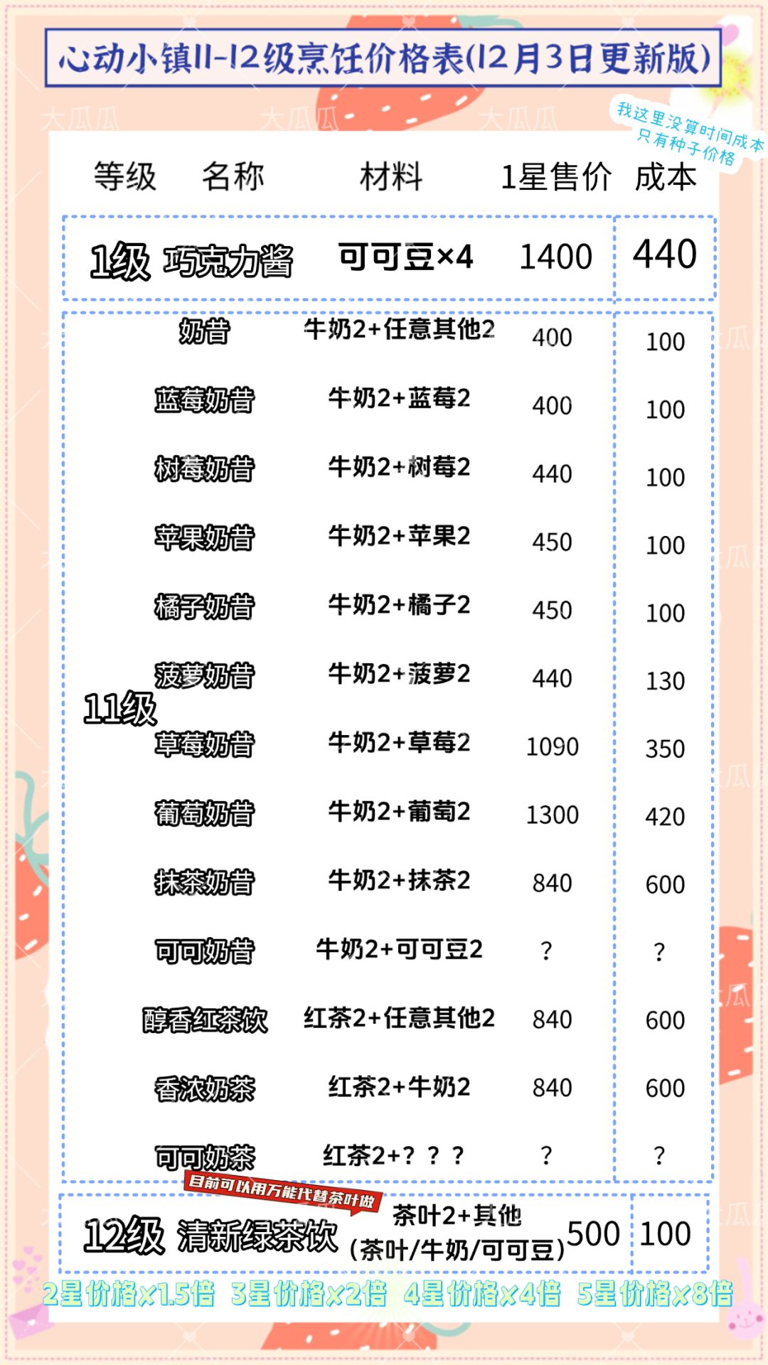 心动小镇 11-12级烹饪新食谱 详细攻略
