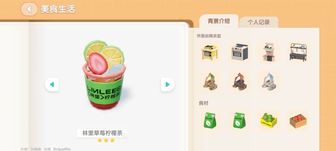 林里手打柠檬茶食谱在活动里小镇新林居里购买,还可以各买200个食材,在烹饪台做好手打柠檬茶后,把最后一个香水柠檬🍋食材换成草莓(记得一定要是最后一个食材哦)就可以做成草莓🍓柠檬茶并得到草莓柠檬茶食谱啦啦,做好一个以后在食谱里点击做草莓柠檬茶就可以一直做了呦比心[表情_比心]比心[表情_比心]比心[表情_比心] #心动小镇 #今天游戏圈发生了啥 #心动小镇攻略 #游戏日常 #浅评一下 #心动小镇安利