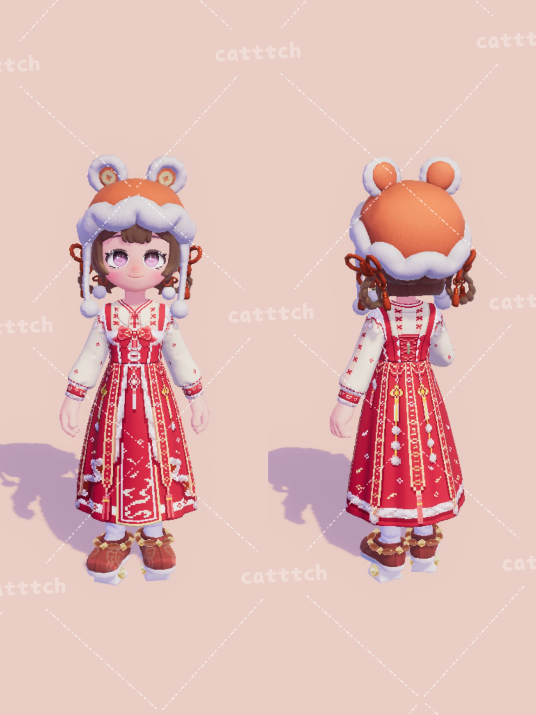 从江南的织锦作坊到故宫的红墙宫阙,红色始终是刻印在华夏文明里的鲜活脉搏。这件连衣裙以传统新年为灵感,以中国红为底,交织祥云、花朵纹样,还原东方审美。裙装上的飘带与挂饰在动作间灵动的飞舞,让千年的域风色彩,在小镇的冬日里鲜活起来。上身效果展示在p2,全部大图纸在p6-8,使用颜色在p9喜欢的宝宝请为我投票🥰 #心动小镇 #心动小镇域风织彩 #心动小镇冰雪季创作征集 #心动小镇创作计划 #心动