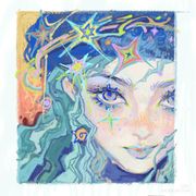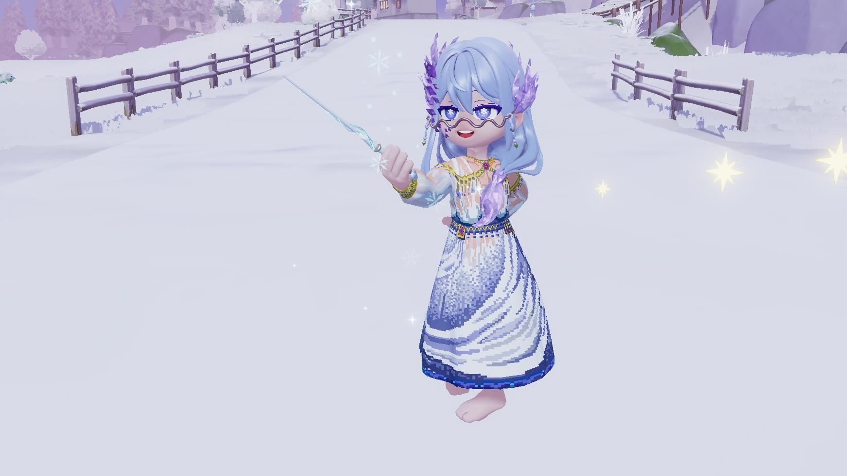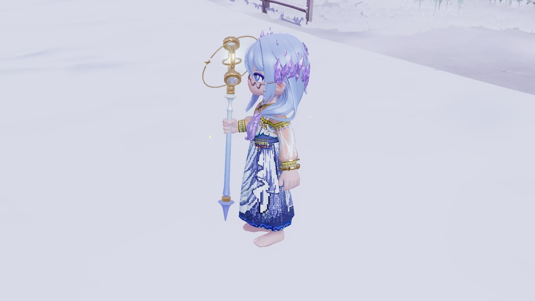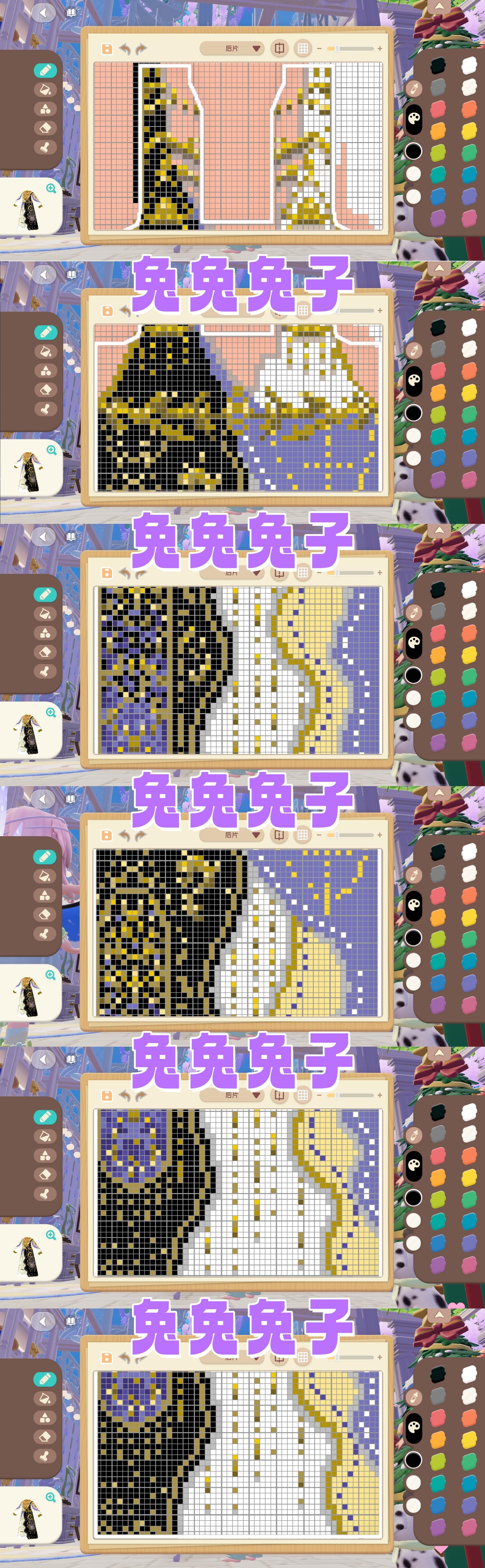 此作品为烬月祭衣。紫藤花下燃烬的月光和魔法杖交织的神秘祭祀,运用蓝紫色调,领口与袖口上添加了独特的异域风装饰,通过层层叠叠的衣襟配饰展现独特的异域风情。格子图已附,喜欢的宝宝可以投一票自取格子图#心动小镇域风织彩