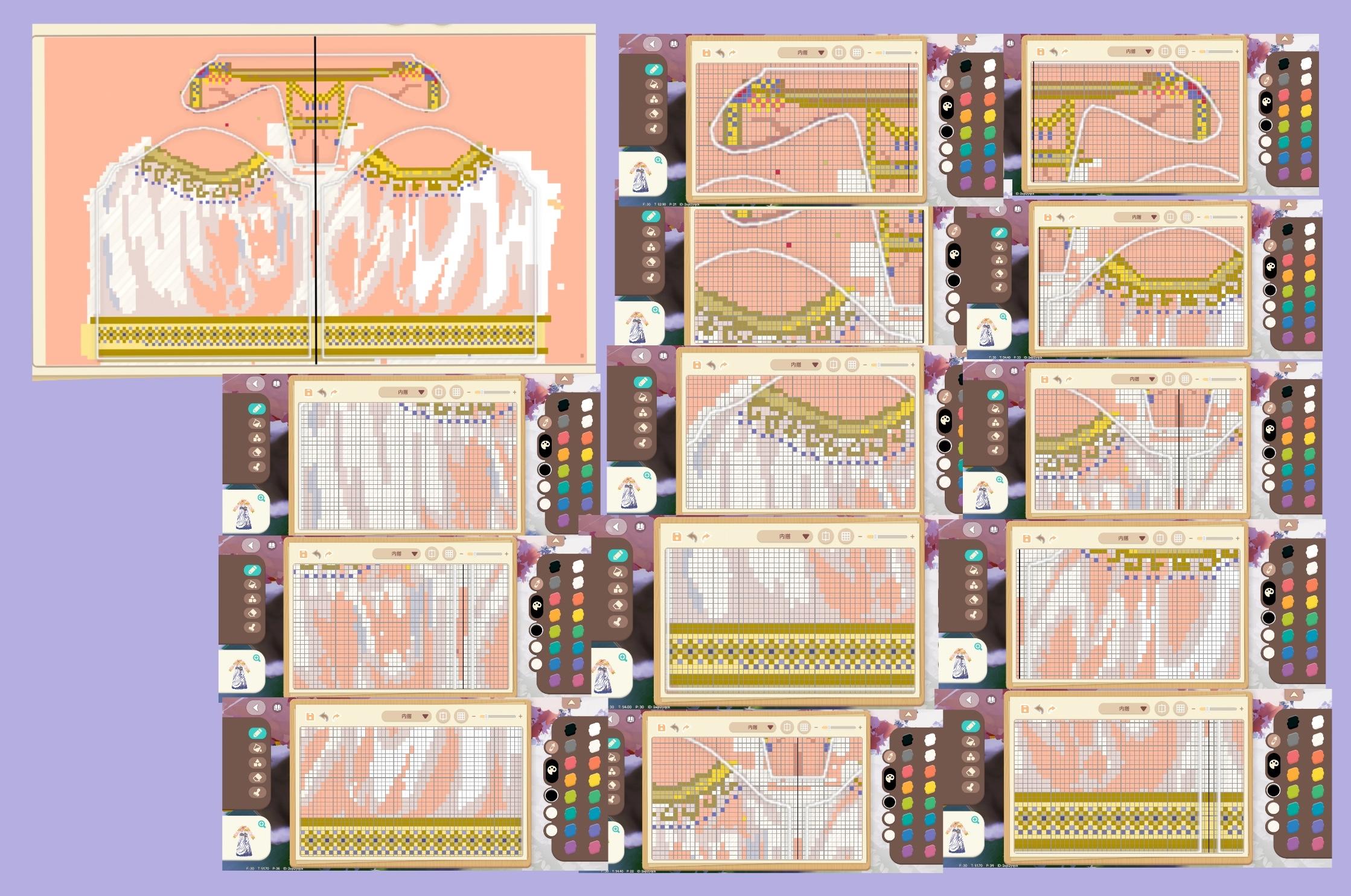此作品为烬月祭衣。紫藤花下燃烬的月光和魔法杖交织的神秘祭祀,运用蓝紫色调,领口与袖口上添加了独特的异域风装饰,通过层层叠叠的衣襟配饰展现独特的异域风情。格子图已附,喜欢的宝宝可以投一票自取格子图#心动小镇域风织彩