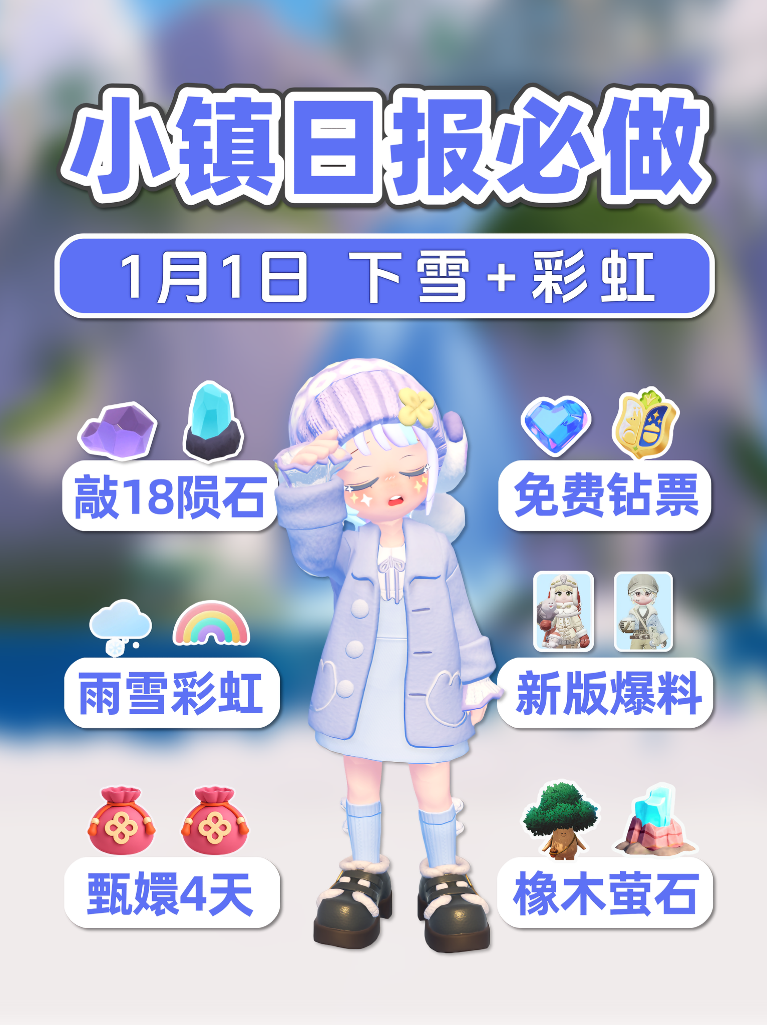 1月1日 小镇日报 敲18陨石 甄嬛4天 免费500蓝钻+30通票