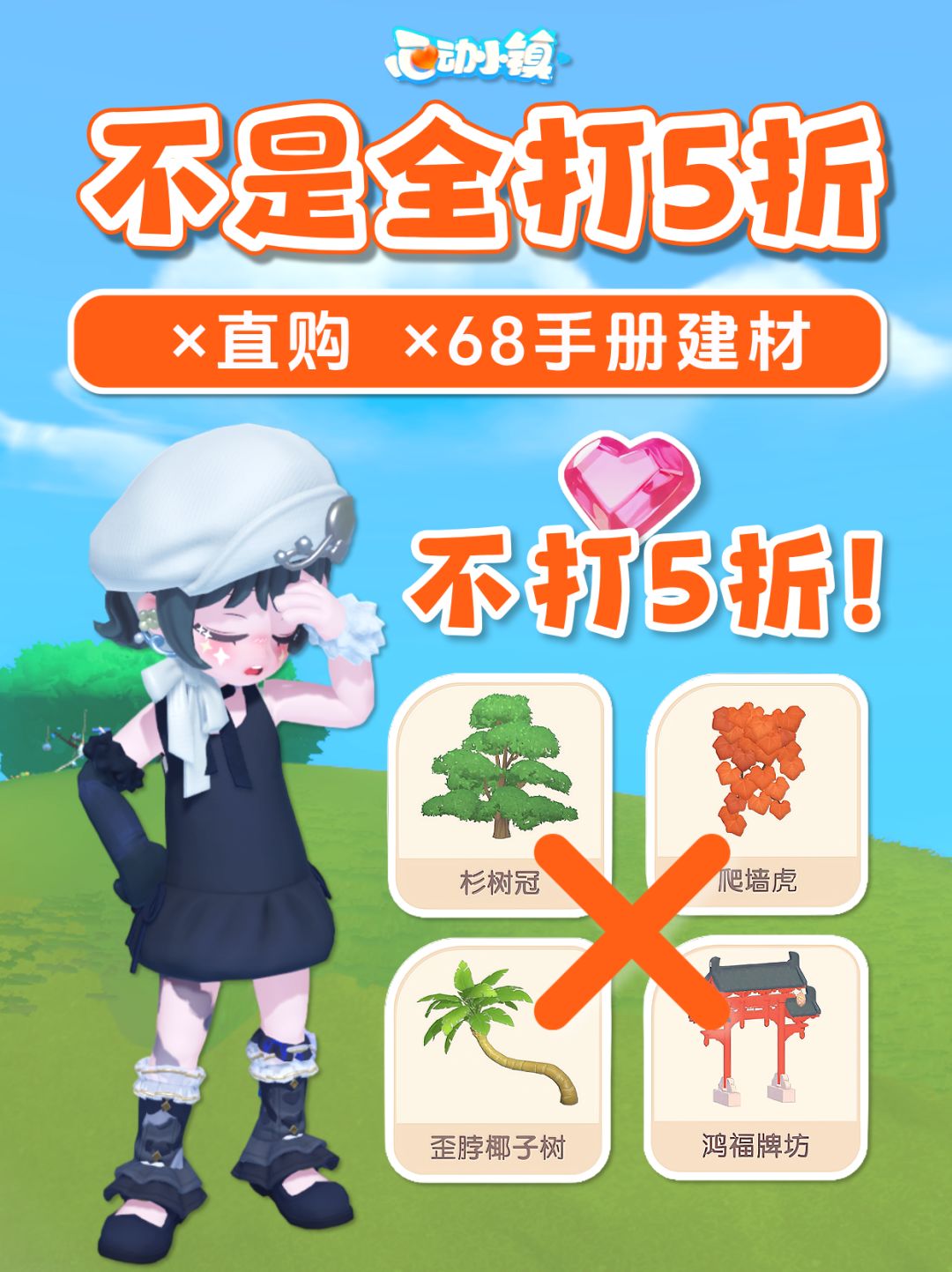 5 折不含: ❶ 68 手册建材 ❷ 橡果百货屋心钻直购 #发现好游戏 #心动小镇 #heartopia #心动小镇攻略